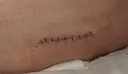 - ↑ Gurusamy, Kurinchi Selvan; Toon, Clare D; Allen, Victoria B; Davidson, Brian R (2014-02-14). Cochrane Wounds Group (ed.). "Continuous versus interrupted skin sutures for non-obstetric surgery". Cochrane Database of Systematic Reviews. 2014 (2) CD010365. doi:10.1002/14651858.CD010365.pub2. PMC 10692401. PMID 24526375.