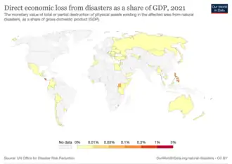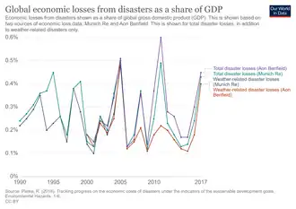 - Indicator 11.5.2: "Direct economic loss in relation to global GDP, damage to critical infrastructure and the number of disruptions to basic services, attributed to disasters."