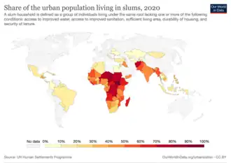 There are currently (in 2022) about 1 billion people living in urban slums.[12]