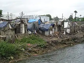 People who live in slums have no access to improved water, access to improved sanitation, sufficient living area, and durable housing.[11]