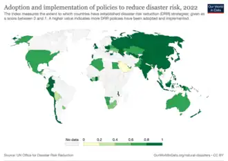 - ↑ "Score of adoption and implementation of national strategies in line with Sendai framework". Our World in Data. Retrieved 2020-10-12.
