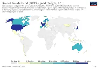 This indicator measures the current pledged commitments from countries to the Green Climate Fund (GCF), the amounts provided and mobilized in United States dollars (USD) per year in relation to the continued existing collective mobilization goal of the US$100 billion commitment to 2025.[13]