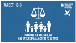 The full text of Target 16.3 is: "Promote the rule of law at the national and international levels and ensure equal access to justice for all."[7]