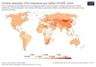 SDG Indicator 9.4.1 as at 2016: Carbon emission intensity of economies.[13]