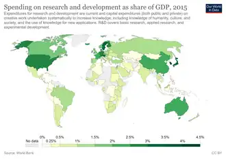 SDG Indicator 9.5.1 Map as at 2015: Spending on research and development as share of GDP.[13]
