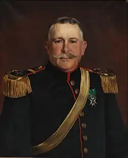 Side weapons were sabre circa 1859 and later m/1899 for officer. Cartouche of black leather was carried in a strap of yellow hide over left shoulder.[5]