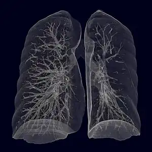| Swyer–James syndrome of the left (smaller) lung, virtual CT-bronchography. | |