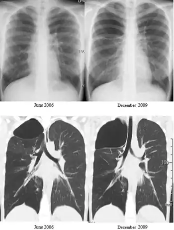 - ↑ 3.0 3.1 Wood, Beverly P (5 March 2019). "Swyer-James Syndrome Imaging: Practice Essentials, Radiography, Computed Tomography". www.emedicine.medscape.com. Archived from the original on 3 March 2022. Retrieved 3 May 2022.