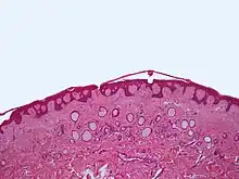 - ↑ James, William D.; Elston, Dirk; Treat, James R.; Rosenbach, Misha A.; Neuhaus, Isaac (2020). "29. Epidermal nevi, neoplasms, and cysts". Andrews' Diseases of the Skin: Clinical Dermatology (13th ed.). Edinburgh: Elsevier. p. 665. ISBN 978-0-323-54753-6.