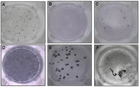 ![]() AID ELISPOT reader images of T-SPOT.TB wells demonstrating -a) + control, b) - control, c) positive ESAT-6 well, d) high background discoloration, e,f) artefacts from non-specific debris |