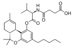 THC valine hemisuccinate (THC-VHS, NB-1111, SBI-100) is a synthetic prodrug of tetrahydrocannabinol, developed at the University of Mississippi as a stabilised formulation for ophthalmic administration, for use in the treatment of glaucoma and other eye conditions requiring reduction in intraocular pressure.[1][2][3][4][5]
