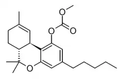THC methylcarbonate (Δ9-THC-methylcarbonate) is a semi-synthetic derivative of tetrahydrocannabinol, first reported as a designer drug in August 2024 when it was identified in a seized shipment by customs in Sweden.[1][2] Coincidentally, it was the 1000th new psychoactive substance identified by the EU Early Warning System on New Psychoactive Substances since it was first established in 1997.[3]