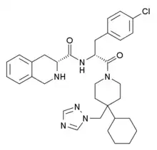 THIQ is a drug used in scientific research, which is the first non-peptide agonist developed that is selective for the melanocortin receptor subtype MC4.[1][2] In animal studies, THIQ stimulated sexual activity in rats,[3] but with little effect on appetite or inflammation.[4] This supports possible application of MC4 selective agonists for the treatment of sexual dysfunction in humans,[5] although THIQ itself has poor oral bioavailability and a short duration of action so improved analogues will need to be developed.[6]
