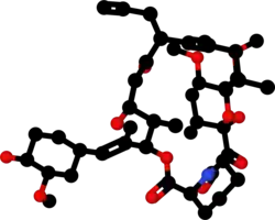 - ↑ Kino T, Hatanaka H, Hashimoto M, Nishiyama M, Goto T, Okuhara M, Kohsaka M, Aoki H, Imanaka H (September 1987). "FK-506, a novel immunosuppressant isolated from a Streptomyces. I. Fermentation, isolation, and physico-chemical and biological characteristics". The Journal of Antibiotics. 40 (9): 1249–55. doi:10.7164/antibiotics.40.1249. PMID 2445721.