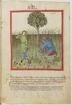 The Taccuinum Sanitatis is a medieval handbook mainly on health aimed at a cultured lay audience. Originally an 11th-century Arab medical treatise composed by Ibn Butlan of Baghdad under the name of Taqwīm aṣ‑Ṣiḥḥa (Arabic: تقويم الصحة, lit. 'Tabular Register of Health').[1] In the West, the work is known by the Latinized name taken by its translations: Tacuinum (sometimes Taccuinum) Sanitatis.[2] The text exists in several variant Latin versions, the manuscripts of which are profusely illustrated. Numerous European versions were made in increasing numbers in the 14th and 15th centuries.[3]