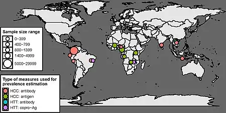 - ↑ Dixon, MA; Winskill, P; Harrison, WE; Whittaker, C; Schmidt, V; Flórez Sánchez, AC; Cucunuba, ZM; Edia-Asuke, AU; Walker, M; Basáñez, MG (19 August 2022). "Global variation in force-of-infection trends for human Taenia solium taeniasis/cysticercosis". eLife. 11. doi:10.7554/eLife.76988. PMID 35984416.