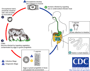 - ↑ 2.00 2.01 2.02 2.03 2.04 2.05 2.06 2.07 2.08 2.09 2.10 2.11 2.12 2.13 "CDC - Taeniasis - General Information - Frequently Asked Questions (FAQs)". www.cdc.gov. 24 April 2019. Archived from the original on 16 December 2019. Retrieved 16 December 2019.