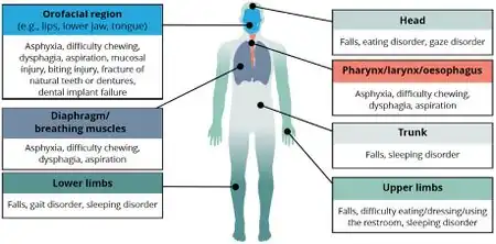 • Rapid, involuntary movements of the limbs, torso, and fingers may also occur.[9]