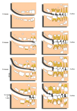 - ↑ Lunt Roger C., Law David B. (October 1974). "A review of the chronology of eruption of deciduous teeth". The Journal of the American Dental Association. 89 (4): 872–879. doi:10.14219/jada.archive.1974.0484. PMID 4609369.