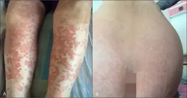 Telaprevir induced- a)lower extremities diffuse maculopapular confluent rash b) and on the back as well