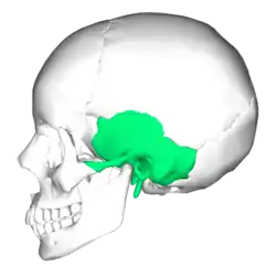 ![]() Position of temporal bone (shown in green) | |