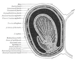 ![]() Diagram of the external features and surrounding structures of the testicles of an adult male | |