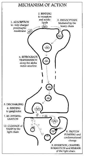 The mechanism of TeNT action can be broken down and discussed in these different steps: