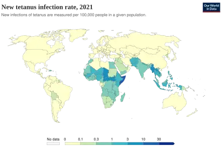 - ↑ "Tetanus and neonatal tetanus (NT)". WHO Western Pacific Region. Archived from the original on 2014-05-03.