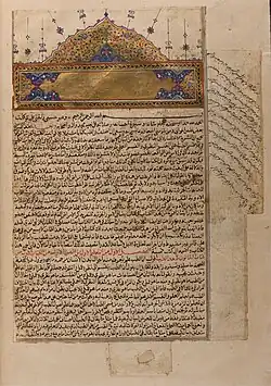 The Canon of Medicine (Arabic: القانون في الطب, romanized: al-Qānūn fī l-ṭibb) is an encyclopedia of medicine in five books compiled by Avicenna (ابن سینا, ibn Sina) and completed in 1025.[1] It is among the most influential works of its time.[2] It presents an overview of the contemporary medical knowledge of the Islamic world, which had been influenced by earlier traditions including Greco-Roman medicine (particularly Galen),[3] Persian medicine, Chinese medicine and Indian medicine. Its translation from Arabic to Latin in 12th century Toledo greatly influenced the development of medieval medicine. It became the standard textbook for teaching in European universities into the early modern period.[4]