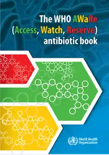 The WHO AWaRe (Access, Watch, Reserve) antibiotic book (2022) is guidance by the World Health Organization on if, when and how to choose an antibiotic.[1] It covers common infections in both children and adults, in both primary care and hospital settings.[1] How to administer the antibiotic, doses, and duration are also included.[1] It also contains instruction on how to provide relief of symptoms without prescribing antibiotics.[1]