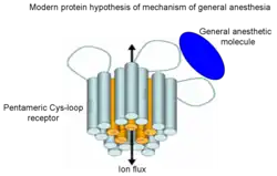 - ↑ Tang P, Xu Y (2002). "Large-scale molecular dynamics simulations of general anesthetic effects on the ion channel in the fully hydrated membrane: The implication of molecular mechanisms of general anesthesia". Proceedings of the National Academy of Sciences. 99 (25): 16035–16040. Bibcode:2002PNAS...9916035T. doi:10.1073/pnas.252522299. PMC 138560. PMID 12438684.