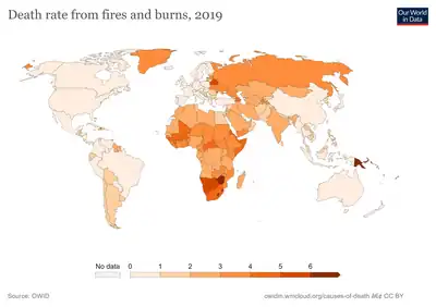 Burns are the only mode of unintentional injury which more girls suffer from than boys worldwide, including by fire.[5]