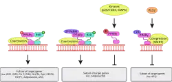 Binding of PPARγ to coactivators appears to reduce the levels of coactivators available for binding to pro-inflammatory transcription factors such as NF-κB; this causes a decrease in transcription of a number of pro inflammatory genes, including various interleukins and tumour necrosis factors.