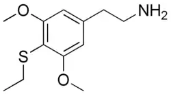 Thioescaline (TE) is a pair of lesser-known psychedelic drugs with the chemical formula C12H19NO2S. They structural analogs of escaline in which an oxygen atom has been replaced with a sulfur atom. They were first synthesized by Alexander Shulgin and reported in his book PiHKAL.[1][2] Very little is known about their dangers or toxicity.