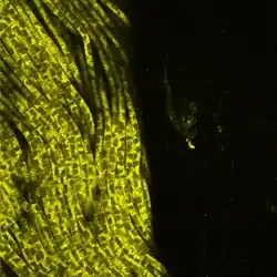 Thioploca are defined by their filamentous morphology, aggregated into bundles enclosed in a polysaccharide sheath, with either a parallel or braided appearance.[9][10] These bundles can reach several cm in length, making them easy to recognise.[11] Occasionally they are also found as free-living trichomes, morphologically similar to the genus Beggiatoa. Thioploca are often mistaken for Beggiatoa, which are close phylogenetic relatives with similar metabolic strategies.[12]