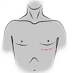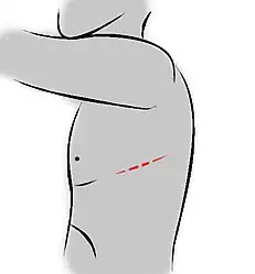 A thoracotomy is a surgical procedure to gain access into the chest.[1] It involves making a cut between the ribs.[1]