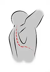 Pain following a thoracotomy may be treated by the use of a nerve block known as a rhomboid intercostal block.[5] In the long term, post-operative chronic pain can develop, known as thoracotomy pain syndrome, and may last from a few years to a lifetime. Treatment to aid pain relief for this condition includes intra-thoracic nerve blocks/opiates and epidurals, although results vary from person to person and are dependent on numerous factors. A recent Cochrane review concluded that there is moderate-quality evidence that regional anaesthesia may reduce the risk of developing persistent postoperative pain after three to 18 months after thoracotomy.[6]