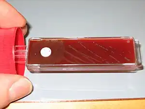 A throat swab is taken to test for the presence or absence of infection, typically in a person with a sore throat.[1][2][3] Identifying the responsible bacteria, virus or fungi can guide treatment.[1] The test may be done by sending the swab for culture followed by antibiotic sensitivity testing, or by rapid strep test or PCR test.[2]