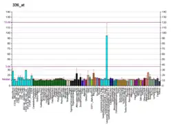 The gene responsible for directing the synthesis of the thromboxane receptor, TBXA2R, is located on human chromosome 19 at position p13.3, spans 15 kilobases, and contains 5 exons.[7] TBXA2R codes for a member of the G protein-coupled super family of seven-transmembrane receptors.[8][9]