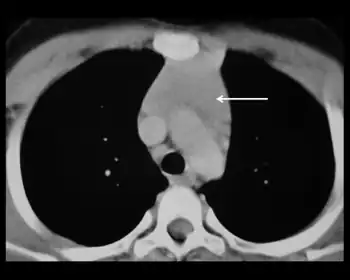 - ↑ Inaoka T, Takahashi K, Mineta M, et al. (June 2007). "Thymic hyperplasia and thymus gland tumors: differentiation with chemical shift MR imaging". Radiology. 243 (3): 869–76. doi:10.1148/radiol.2433060797. PMID 17463136. Archived from the original on 2017-09-21. Retrieved 2022-07-28.