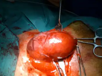 Intraoperative dissection showing the intact mass and the sternocleidomastoid muscle to the side.