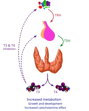 - ↑ 12.0 12.1 Chatzitomaris, Apostolos; Hoermann, Rudolf; Midgley, John E.; Hering, Steffen; Urban, Aline; Dietrich, Barbara; Abood, Assjana; Klein, Harald H.; Dietrich, Johannes W. (20 July 2017). "Thyroid Allostasis–Adaptive Responses of Thyrotropic Feedback Control to Conditions of Strain, Stress, and Developmental Programming". Frontiers in Endocrinology. 8: 163. doi:10.3389/fendo.2017.00163. PMC 5517413. PMID 28775711.