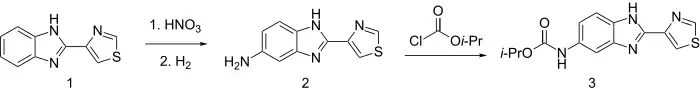 - ↑ Hoff, D. R.; Fisher, M. H.; Bochis, R. J.; Lusi, A.; Waksmunski, F.; Egerton, J. R.; Yakstis, J. J.; Cuckler, A. C.; Campbell, W. C. (1970). "A new broad-spectrum anthelmintic: 2-(4-Thiazolyl)-5-isopropoxycarbonylamino-benzimidazole". Experientia. 26 (5): 550–551. doi:10.1007/BF01898506. PMID 4245814. S2CID 26567527.