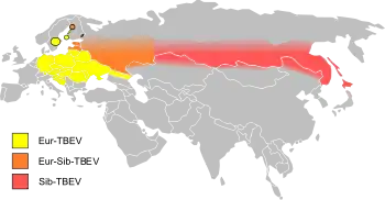 Tick-borne encephalitis affects more than 10,000 people a year.[2] It primarily occurs in western and northern Europe and northern and eastern Asia.[4] In Europe, rates of disease have increased nearly 4 fold over the last three decades.[1] Infections most commonly occur in April through November.[4] The virus was first described in 1937.[3] Though descriptions of possible cases occur at least as far back as the 18th century.[2] A number of other animals including cows, goats, dogs, and bats may also be infected.[1]