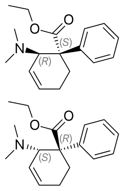 ![]() (1S,2R)-tilidine (dextilidine; top), (1R,2S)-tilidine (bottom) [skeletal diagram 2D] | |