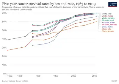 - ↑ 10.00 10.01 10.02 10.03 10.04 10.05 10.06 10.07 10.08 10.09 10.10 10.11 10.12 Meyer, Lacey (3 October 2008). "Timeline: Milestones in Cancer Treatment". Cure. Special Issue 2008. 7 (4). Archived from the original on 22 April 2019. Retrieved 7 September 2023.