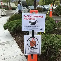 - ↑ Romo, Vanessa (June 18, 2020). "California Gov. Newsom Makes Face Masks Mandatory Amid Rising Coronavirus Cases". NPR.org. Retrieved October 16, 2020.