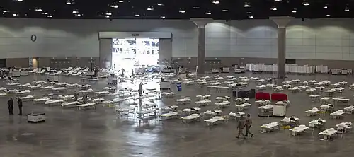 On February 5, the U.S. evacuated 345 citizens from Hubei Province and took them to two air bases in California, Travis Air Force Base in Solano County and Marine Corps Air Station Miramar, San Diego, to be quarantined for 14 days.[7][4] The evacuees from one more government evacuation flight on February 6 were also taken to bases in Nebraska and Texas.[4][8]