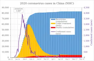 - ↑ "截至2月27日24时新型冠状病毒肺炎疫情最新情况". National Health Commission. 28 February 2020. Archived from the original on 28 February 2020. Retrieved 28 February 2020.