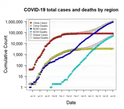 - ↑ "South Korea reports 594 more coronavirus cases, total 2,931". CNA. 29 February 2020. Archived from the original on 7 March 2020. Retrieved 29 February 2020.